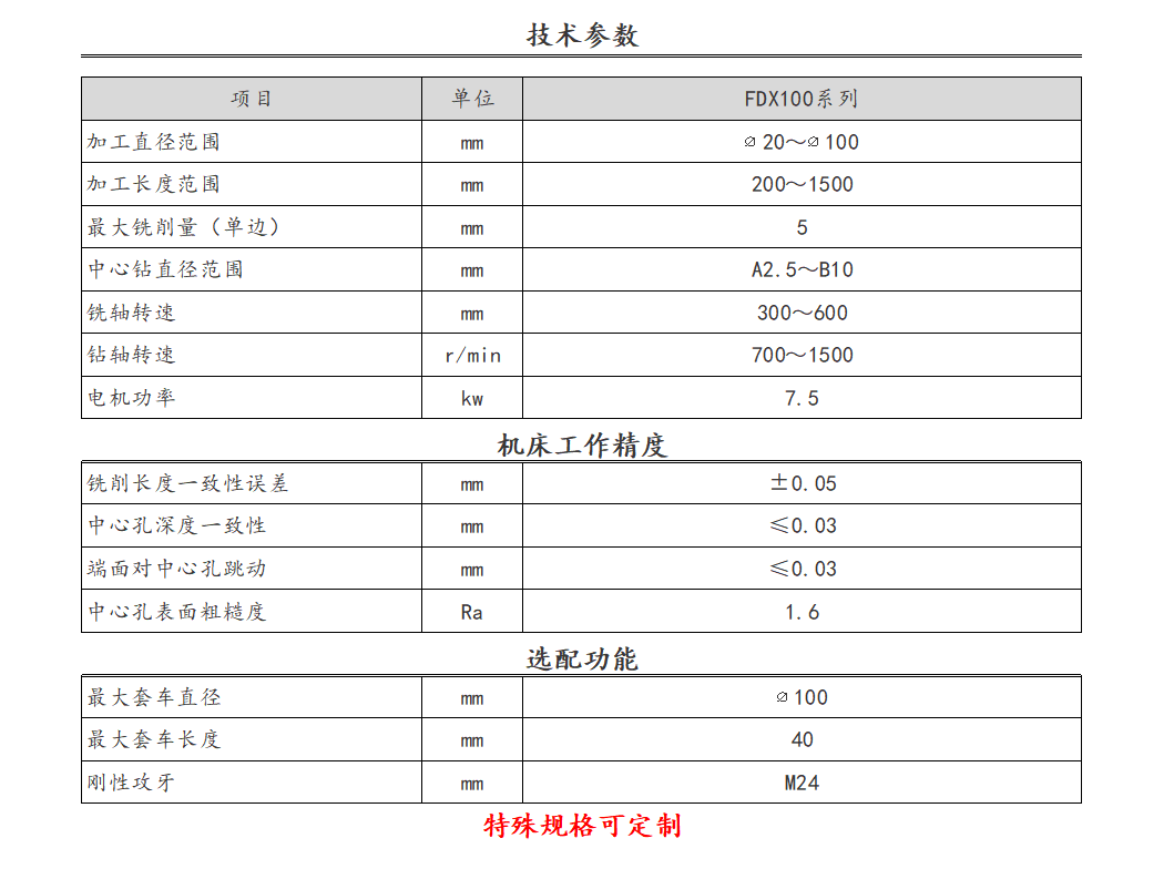 FDX100-1500四軸重型銑端面打中心孔機床
